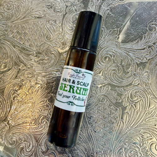 Pure organic blend of 5 powerful ingredients that will nourish your hair, scalp and follicles. High in antioxidants and omegas, this magical serum strengthens and softens hair, improves scalp health and feeds your follicles. Massage directly on scalp and hair then leave on at least 30 minutes for maximum absorption. May use as a spot treatment for thin patches. 10ml glass bottle with stainless steel roller ball. Refillable in store.
